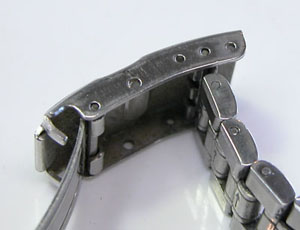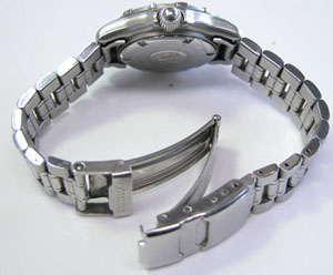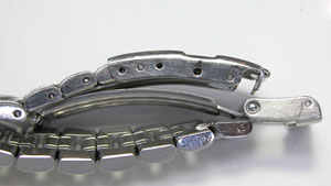 ステンレス無垢バンドに三つ折れダブルロック。