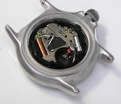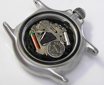 綺麗になったケースにムーブメントを戻して電池格納部をチェックします。