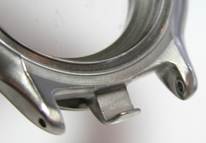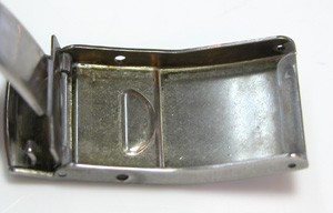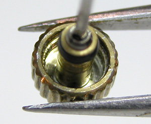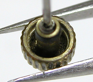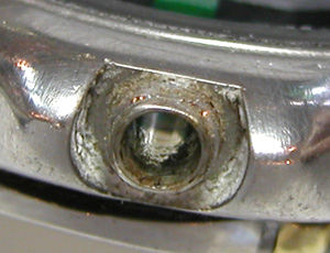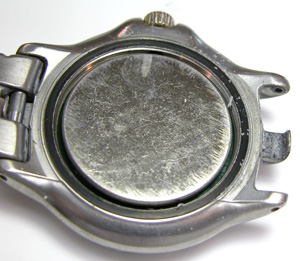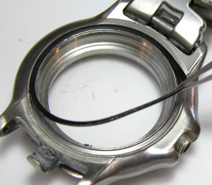 裏蓋の裏側もチェックします。金属の耐磁プレートがみえますから外して。