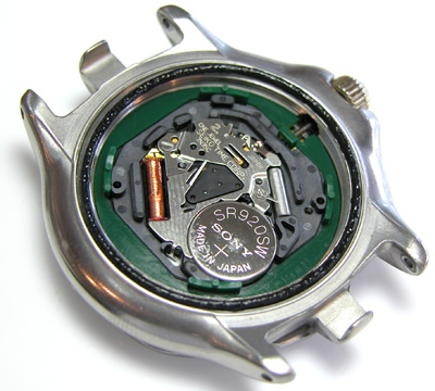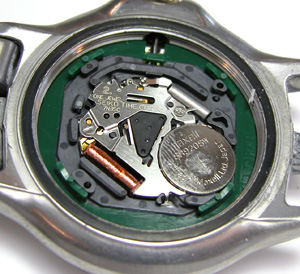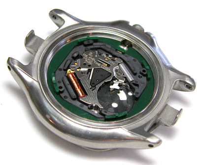 綺麗になったケースにムーブメントをもどして電池格納部をチェックします。