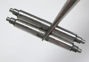 バネ棒も洗浄。ダイバー用のバネ棒はご覧のように太い。