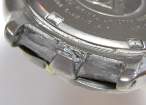 裏蓋は勿論スクリューバックで電池交換時期の刻印をする目盛があるのがダイバー。