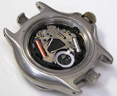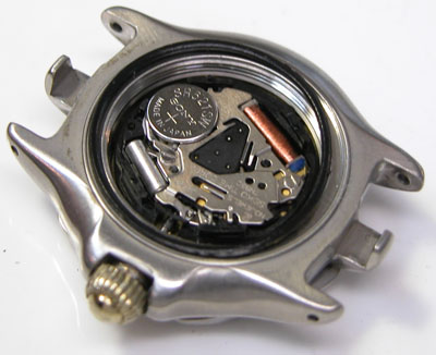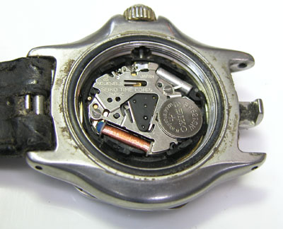 綺麗になったケースにムーブメントを戻して電池格納部をチェックします。