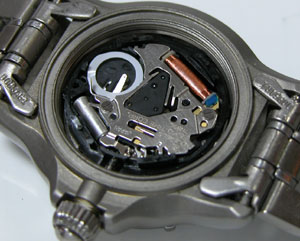 この○ですがポンチで打ち込んだ凹みがあります。これの意味するところは「97年末に一度メーカーでの電池交換」をしています。この腕時計の電池寿命が2年ですから99年末に止まったとして、6年放置されていた訳です。