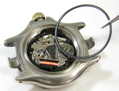 綺麗になったケースにムーブメントを戻して電池格納部をチェックします。