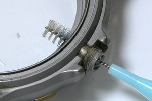 竜頭の裏側は必ず汚れています。この汚れが溜まるとネジが締まらなくなります。竜頭パイプも汚れていますね。