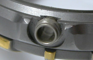 裏蓋には電池交換時期を刻印するためのゲージが記載。開けると耐磁プレートが見えます。