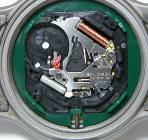 ムーブメントを戻して電池交換。本来はムーブメントを戻す前に「防水試験」をしますが、こちらでは致しませんが、その分お安い。