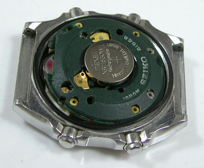 綺麗になったケースにムーブメントを戻して電池格納部をチェックします。