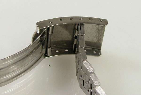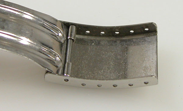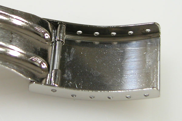 ステンレス板巻きバンドに三つ折れバックル。