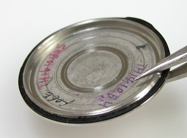 綺麗になったケースにムーブメントを戻して電池格納部をチェックします。