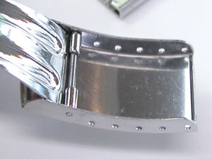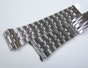 ステンレス板巻きバンドに三つ折れバックル。