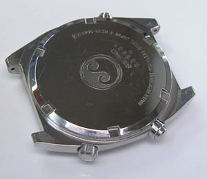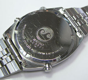 裏蓋はスクリューバックで右が裏蓋記載。