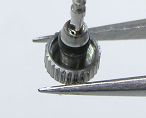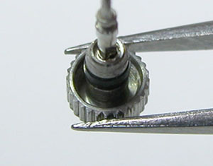 ムーブメントを抜いたまま裏蓋を閉めて防水テスト。