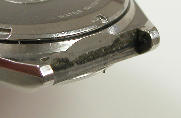 ラグ部の汚れや裏蓋の裏側もチェックします。