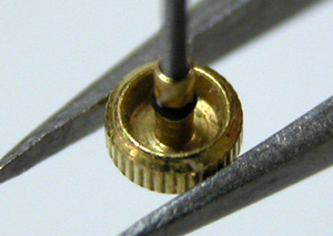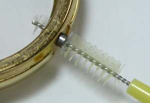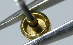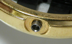 竜頭の裏側をチェックしますが綺麗な状態。竜頭パイプを綺麗ですね。でもケースと裏蓋の接触面は汚れていますから未使用では無い事は分かります。