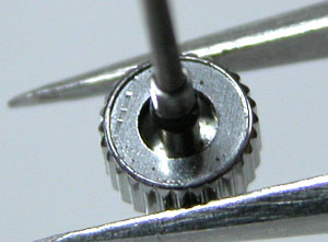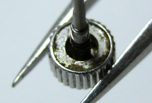 竜頭パイプもチェックします。これが文字盤&ムーブメント。