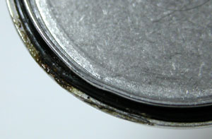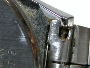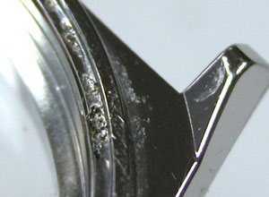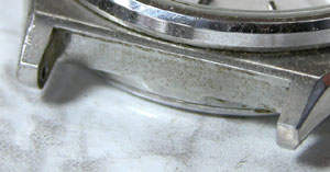 先ほどのケースのサビの部分ですが、裏蓋側はこうなっていました。こちらは綺麗に落とせました。