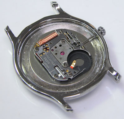 綺麗になったケースにムーブメントを戻して電池格納部をチェックします。