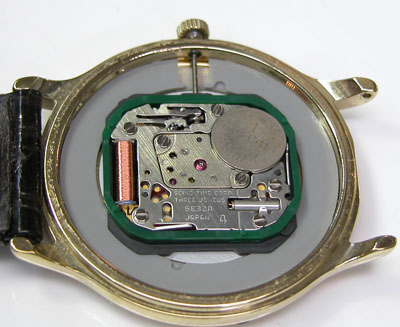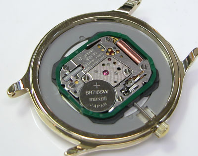 綺麗になったケースにムーブメントを戻して電池格納部をチェックします。