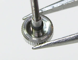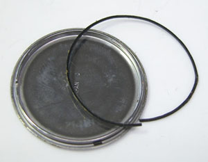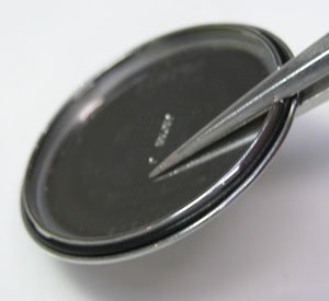裏蓋の裏側もチェックします。パッキンを外すと切れていますから後で交換。