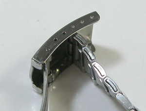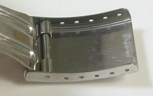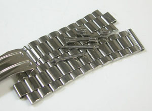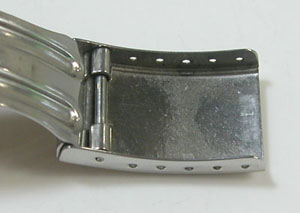 ステンレス板巻きバンドに三つ折れバックル。