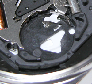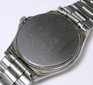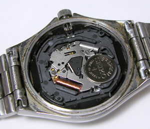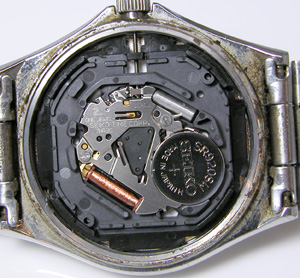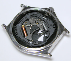 ムーブメントを戻して。電池格納部をチェックします。きれいな状態。問題なく動きます。