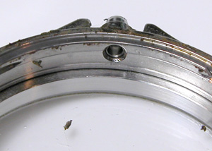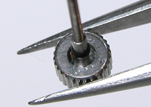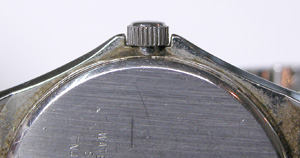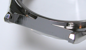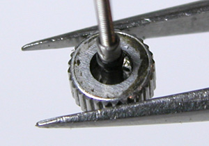 錆びた部分はこれが限界。まぁ、洗浄していますから錆びた粉が落ちなければそれで良し。あまり削り落としてもケースとの間に隙が出来ますしね。竜頭パイプはピッカピカ!