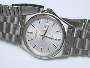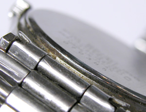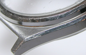 簡単にバンドも外せて、軽く磨いておきましょう。といってもキズは取れないですが。竜頭も綺麗になりました。