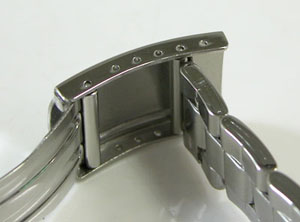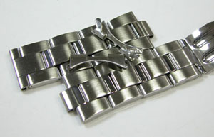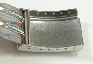 ステンレス板巻きバンドに三つ折れバックル。