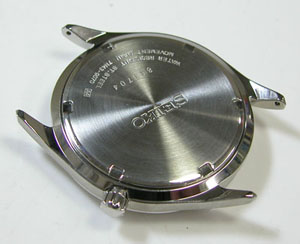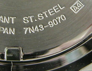 裏蓋はスクリューバックで右が裏蓋記載。