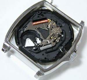 掃除して。裏蓋は”はめ込みタイプ”。このタイプの形状の裏蓋は開けるのも閉めるのも堅くコツが要りますから、慣れない方は触らない方が無難ですね。