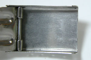 板巻きバンドに三つ折れバックルのオリジナル。バックルの裏側は必ず汚れていますから。