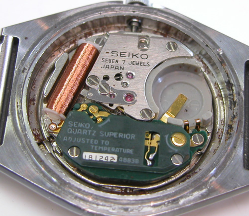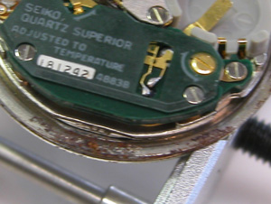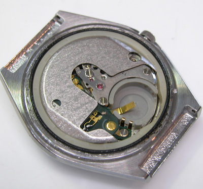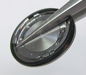 綺麗になったケースにムーブメントを戻して電池格納部をチェックします。