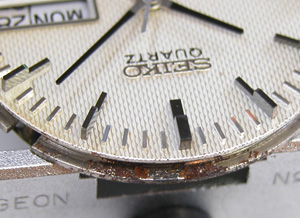 ここまで錆びるというには腕時計を水に落としたか?温泉か?手洗いや汗ではここまで錆びないですから。