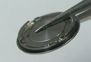綺麗になったケースにムーブメントを戻して電池格納部をチェックします。