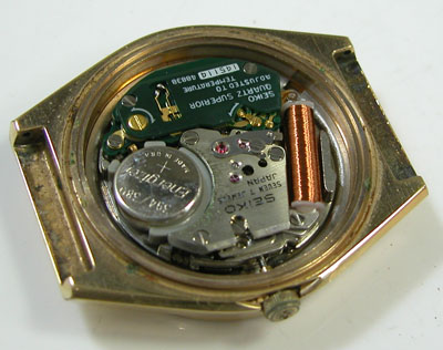 もちろん文字盤にもですが「QUARTZ」の文字もあるのが普通でした。世界の時計業界をひっくり返した技術ですから前面に押し出しても良いでしょう。