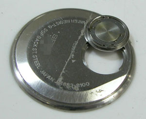 裏蓋の裏側もチェックします。電池蓋パッキンが無いですから指で簡単に回ります。
