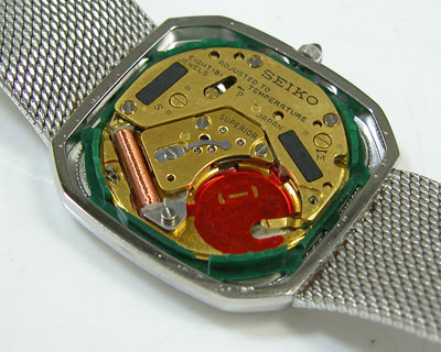 綺麗になったケースにムーブメントを戻して電池格納部をチェックします。