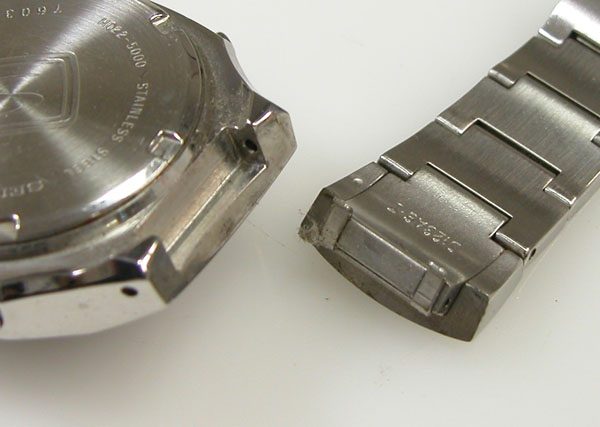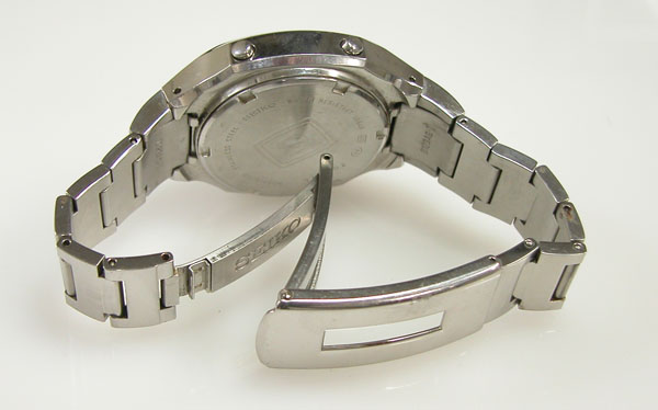 ベルトを外さないと裏蓋が開けられない構造ですから外します。