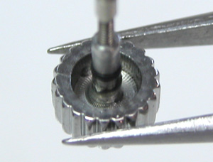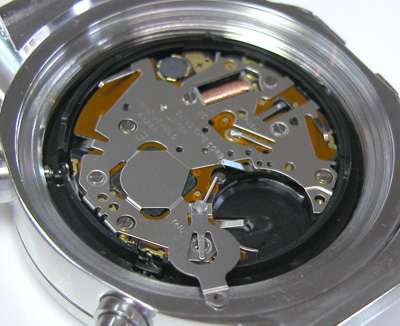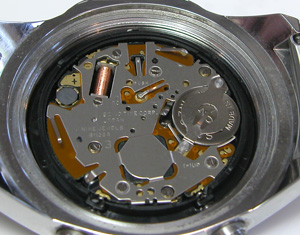 綺麗になったケースにムーブメントをもどして電池格納部をチェックします。