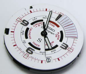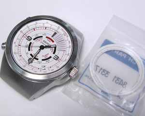 これが取り出した文字盤&ムーブメント。内部の目盛リングが外れないので、そのまま洗浄。