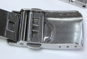 5本届いたうちの1本。ステンレス無垢バンドに三つ折れプッシュバックル&ダブルロック。