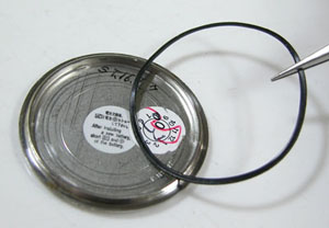 パッキンにシリコン塗布をして裏蓋に戻し。