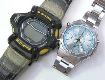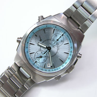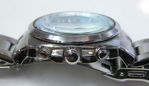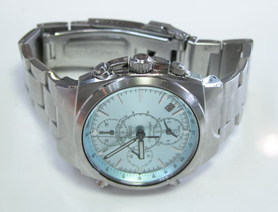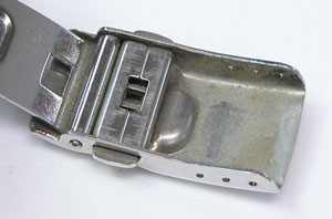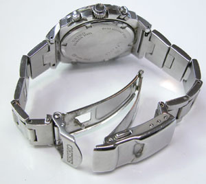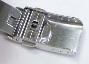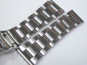 ステンレス無垢バンドに三つ折れプッシュバックル。
