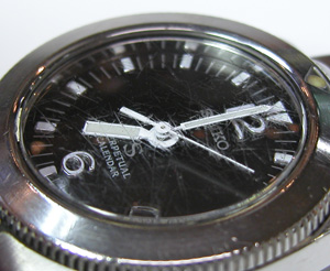 5本届いたうちの1本。同じ腕時計が2本ありました。こちらはガラスのキズが多いですから、かなりの使用感。