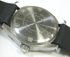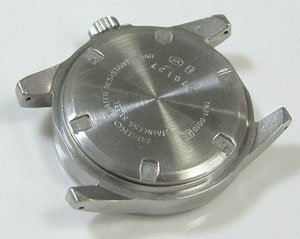 裏蓋の裏側もチェックします。ズッシリ重いですがねじ切りと同じ厚みの金属のプレートがはめ込まれております。