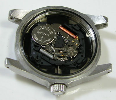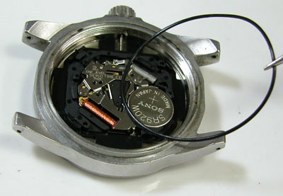 綺麗になったケースにムーブメントを戻して電池格納部をチェックします。