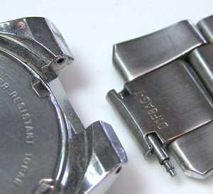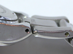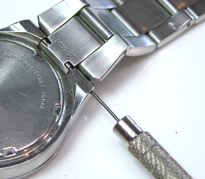 ベルトはバネ棒で留まっています。このバネ棒は外しにくいな・・・おや?横に穴があるでは!
