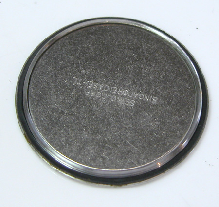 裏蓋を開けるとずっしり重い。裏蓋の裏側にコインでも貼り付けた様な構造です。